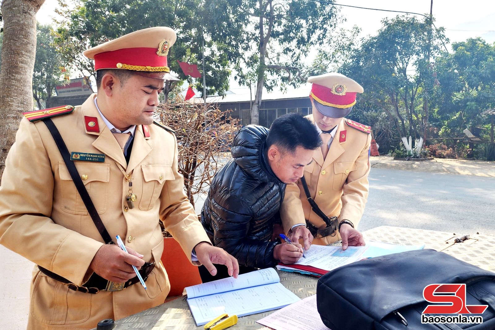 Thực hiện nhiệm vụ bảo đảm trật tự an toàn giao thông trên quốc lộ 4G, cán bộ, chiến sĩ Đội Cảnh sát giao thông số 2, Phòng Cảnh sát giao thông Công an tỉnh Sơn La luôn bám tuyến, bám địa bàn, giữ gìn TTAT giao thông, an toàn cho những chuyến xe.