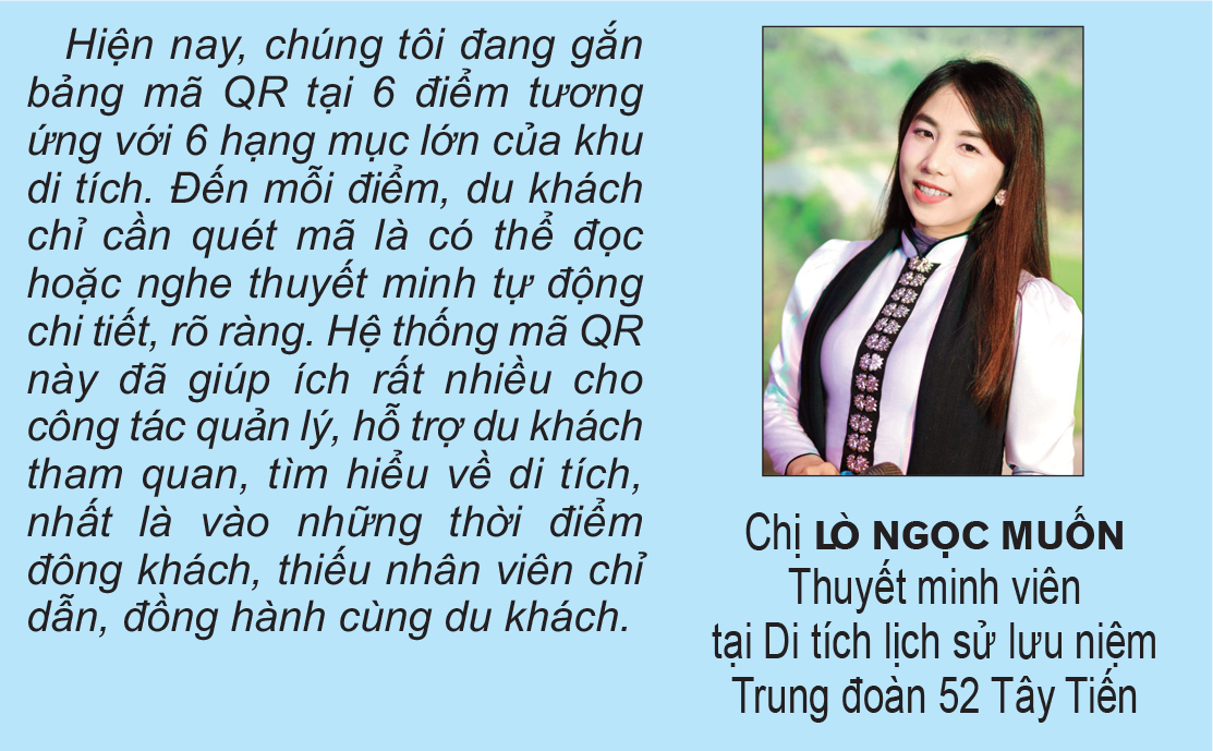 Khu du lịch quốc gia Mộc Châu hiện có hơn 20 di tích lịch sử, văn hóa, danh lam thắng cảnh. Nhiều di tích đã được tôn tạo, bảo vệ, đầu tư nâng cấp thêm các hạng mục phụ trợ đáp ứng nhu cầu tham quan, tìm hiểu lịch sử và dâng hương, tưởng niệm các Anh hùng liệt sĩ. Các di tích tại đây cũng được đưa vào lịch trình tour, tuyến du lịch, trở thành điểm đến ý nghĩa cho du khách. Bắt nhịp chuyển đổi số, công tác số hóa di tích được các địa phương tại đây tích cực triển khai. Tiêu biểu với 5 công trình thanh niên “Số hóa di tích lịch sử” bằng mã QR tại 5 di tích: Đồn Mộc Lỵ; di tích lịch sử lưu niệm Trung đoàn 52 Tây Tiến; nơi Bác Hồ nói chuyện với cán bộ, công nhân Nông trường Mộc Châu; nơi Bác Hồ nói chuyện với cán bộ, nhân dân các dân tộc Mộc Châu; danh lam thắng cảnh hang Dơi. Với mô hình này, du khách chỉ cần quét mã QR là có thể dễ dàng tìm hiểu về thông tin, hình ảnh, nghe thuyết minh về các di tích.