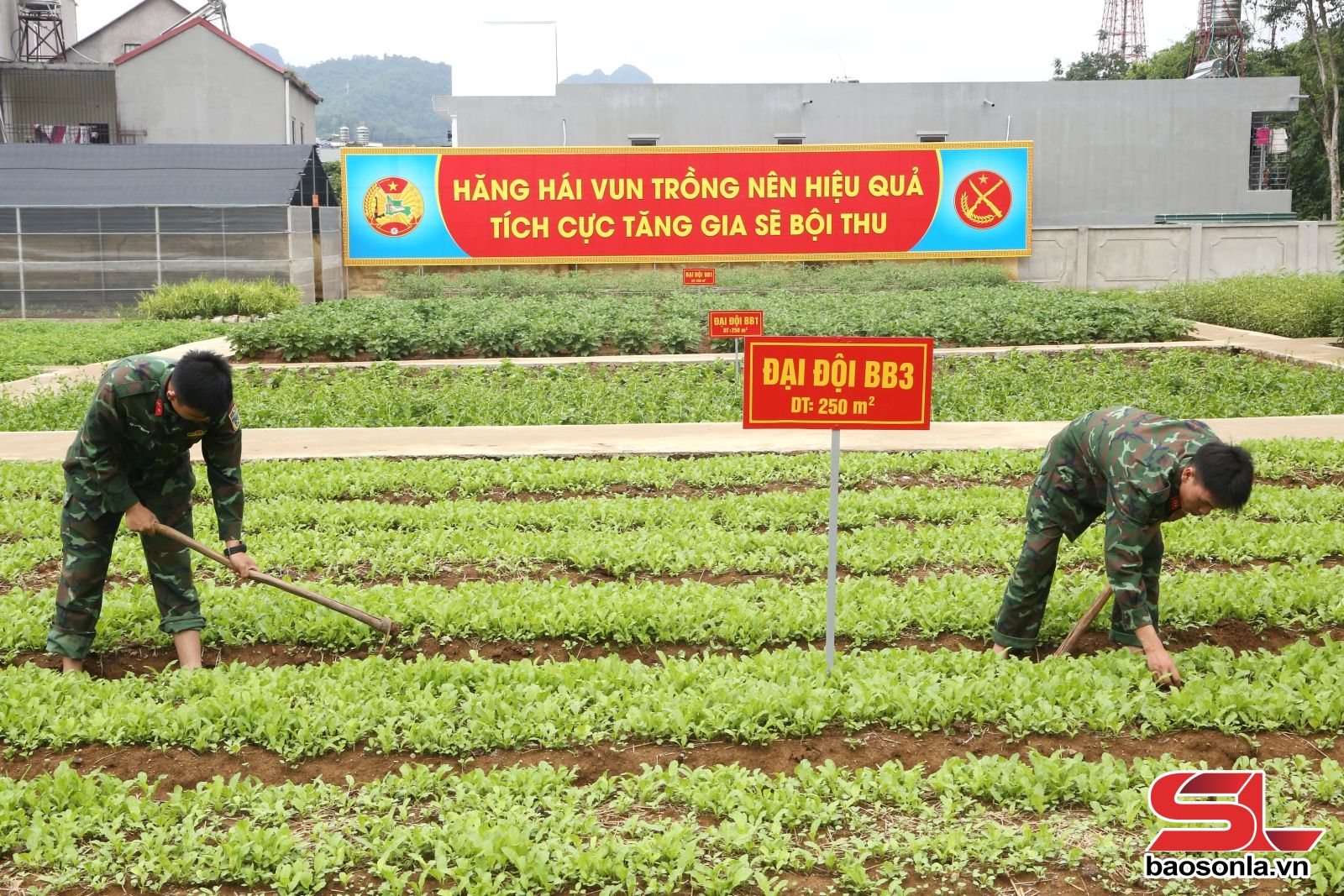 Tại Tiểu đoàn 1, Trung đoàn 754, khu vực tăng gia sản xuất với mô hình vườn - ao - chuồng, gắn với hoạt động của trạm chế biến và bếp ăn tập trung được bố trí phù hợp. Đơn vị luôn chủ động trong tăng gia, sản xuất, các bếp ăn của Tiểu đoàn luôn tự túc được 100% rau xanh và 95% thịt các loại, bảo đảm nguồn thực phẩm sạch chất lượng cao, phục vụ nhu cầu của cán bộ, chiến sĩ. Thiếu tá Đỗ Tràng Tuân, Phó Tiểu đoàn trưởng Tiểu đoàn 1, Trung đoàn 754, thông tin: Trong giai đoạn huấn luyện tân binh, quân số tại bếp ăn tăng lên hàng trăm suất ăn mỗi ngày, nhưng nhờ thực hiện tốt hậu cần, tăng gia tự túc rau xanh và chăn nuôi nên đơn vị cơ bản đáp ứng nhu cầu của bếp nuôi quân với giá thành luôn thấp hơn giá thị trường mà vẫn đảm bảo chất lượng.