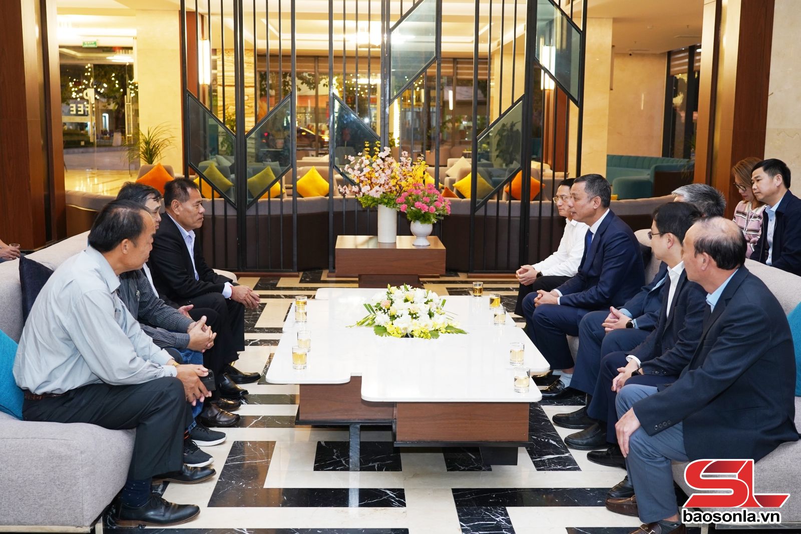 Tiếp đón đoàn, đồng chí Nguyễn Thành Công đã cảm ơn Thứ trưởng Bộ Nông nghiệp và Môi trường, nước CHDCND Lào và Đoàn đã đến thăm và công tác làm việc tại tỉnh Sơn La. Đồng thời, thống nhất với đoàn về các nội dung thăm và làm việc tại tỉnh. Theo đó, nội dung làm việc của đoàn với tỉnh Sơn La, gồm: Công tác quản lý và tình hình tài nguyên nước ở địa phương; vận hành các đập thủy điện trên lưu vực chung của hai quốc gia; thảo luận về cơ chế phối hợp, chia sẻ thông tin về tài nguyên nước, khí tượng thủy văn nhằm tăng cường công tác dự báo, cánh báo lũ lụt, hạn hán; các giải pháo tăng cường hợp tác trong lĩnh vực quản lý tài nguyên nước.