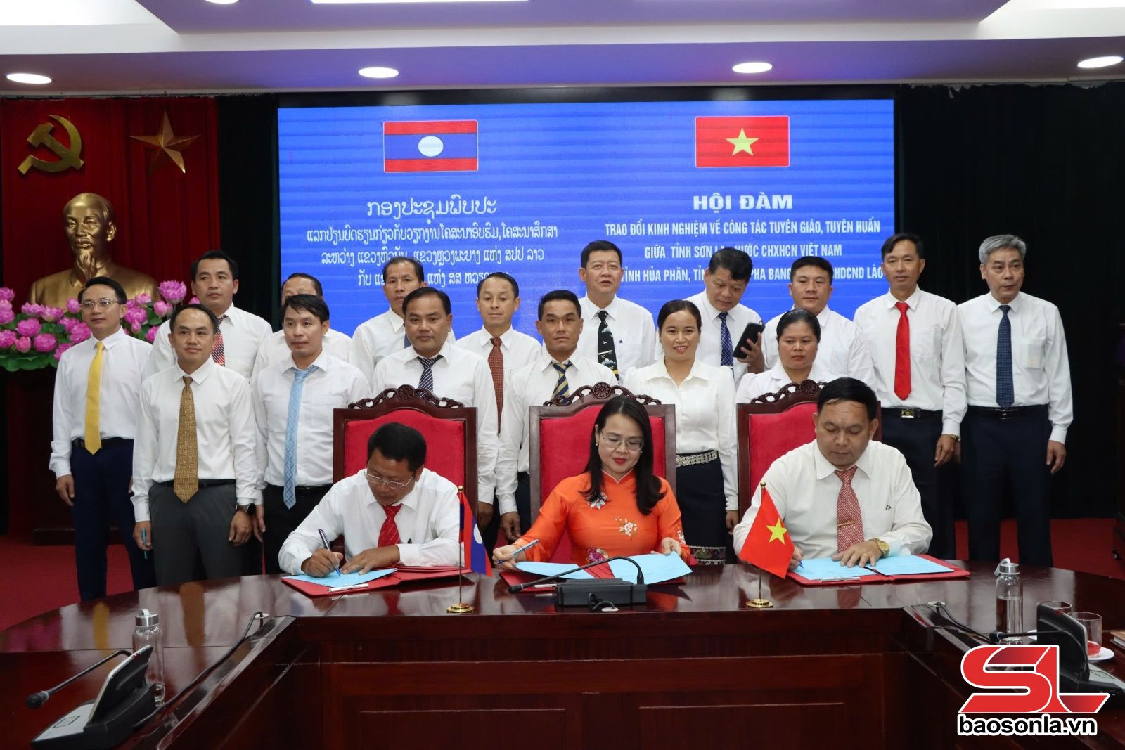 Ban Tuyên giáo và Dân vận Tỉnh ủy Sơn La cùng Ban Tuyên huấn các tỉnh Hủa Phăn, Luông Pha Bang ký biên bản ghi nhớ hợp tác.