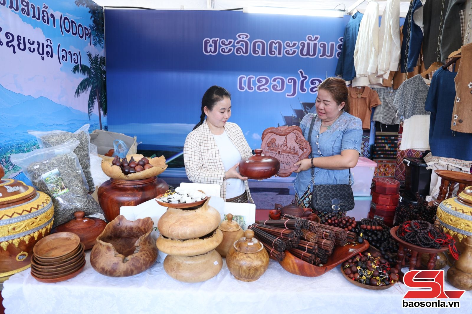 Gian hàng của tỉnh Xay Nhạ Bu Ly, nước CHDCND Lào tại Hội chợ Xúc tiến thương mại nông sản và sản phẩm OCOP khu vực Tây Bắc - Sơn La năm 2025.