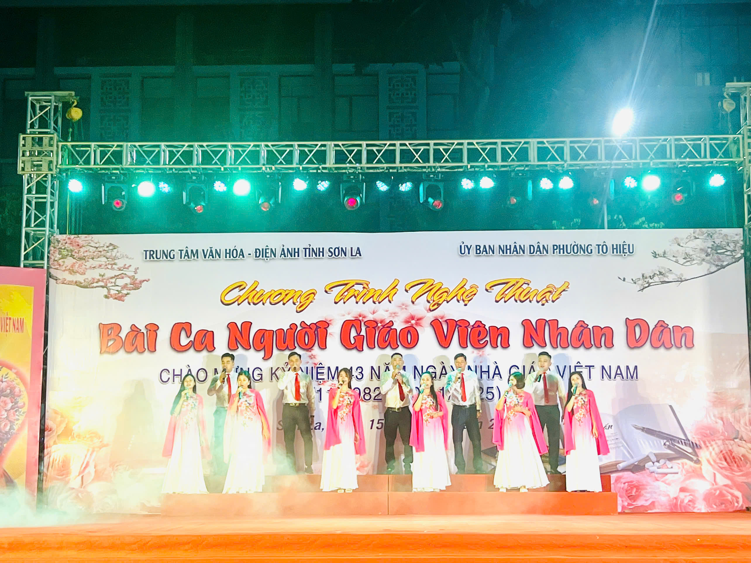 Tối ngày 15/11, Trung tâm Văn hóa – Điện ảnh tỉnh Sơn La phối hợp với UBND phường Tô Hiệu đã tổ chức chương trình văn nghệ với chủ đề “Bài ca người giáo viên nhân dân”, tạo không khí vui tươi, phấn khởi trong cộng đồng giáo dục và nhân dân trên địa bàn.