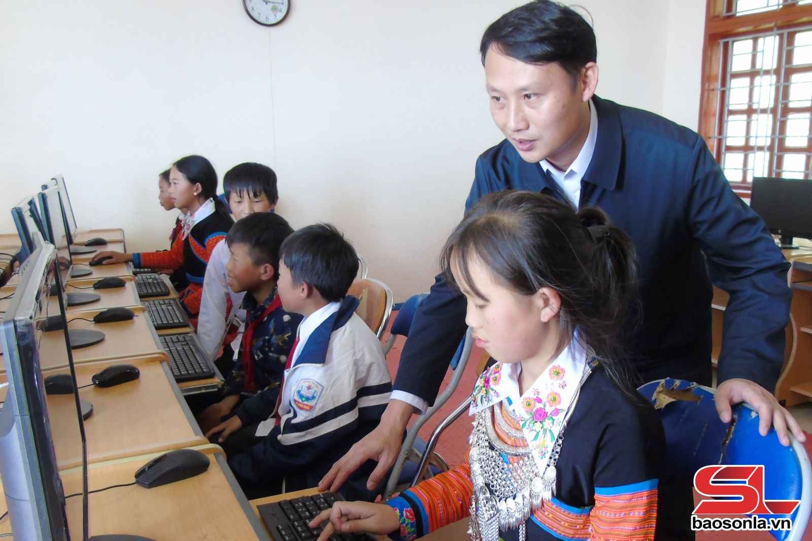 Một tiết học Tin học của thầy và trò trường THCS Làng Chếu, xã Tà Xùa.