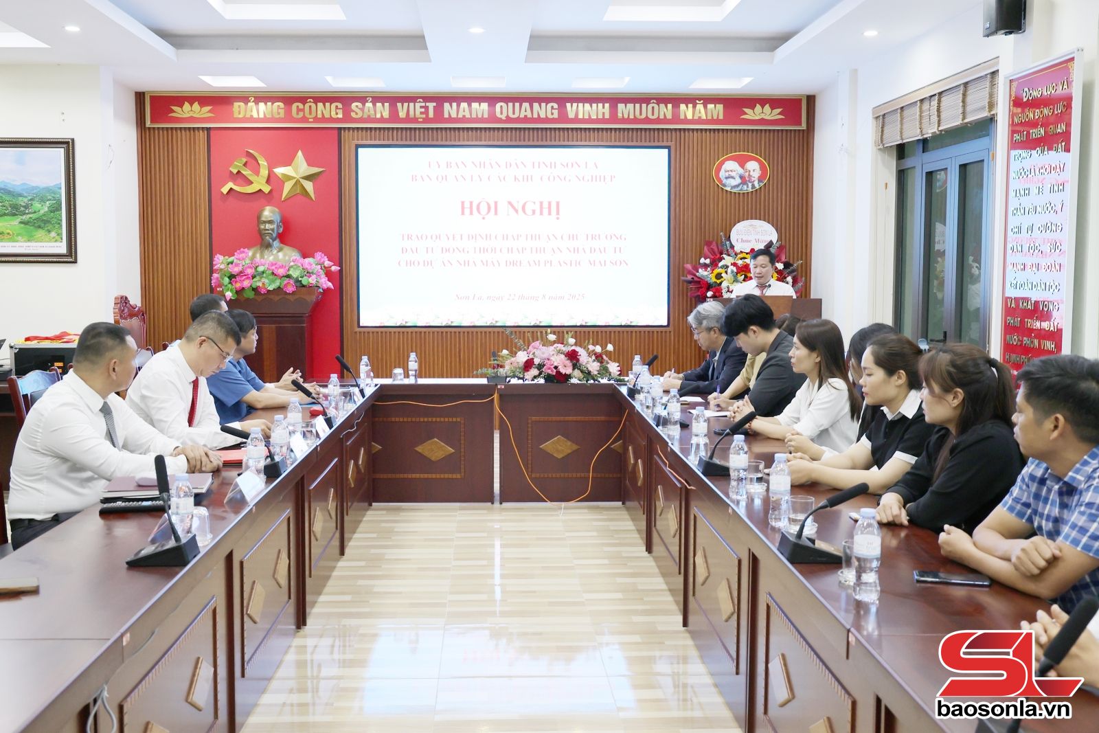 Hội nghị trao quyết định chấp thuận chủ trương đầu tư, đồng thời chấp thuận nhà đầu tư Dự án Nhà máy Dream Plastic Mai Sơn, của Công ty TNHH Dream Plastic.