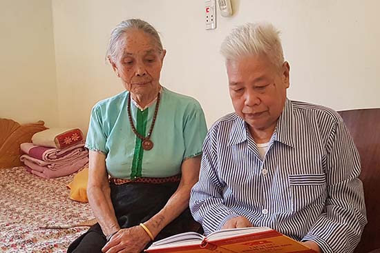 Ông Vì Văn Xóa cùng vợ ôn lại kỷ niệm năm xưa.