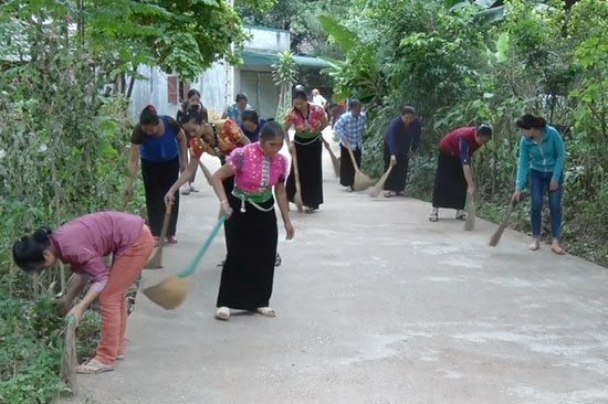 Chi hội Phụ nữ bản Piềng Lán, xã Chiềng Hắc (Mộc Châu) quét dọn ngõ xóm.