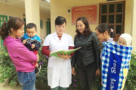 Cán bộ dân số xã Nà Mường (Mộc Châu) tuyên truyền các biện pháp KHHGĐ cho phụ nữ trong xã.