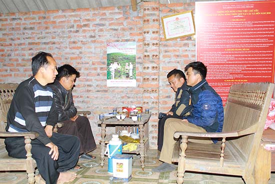 Cán bộ xã Chiềng Hắc (Mộc Châu) tuyên truyền về pháp luật tại bản Tà Số 2.