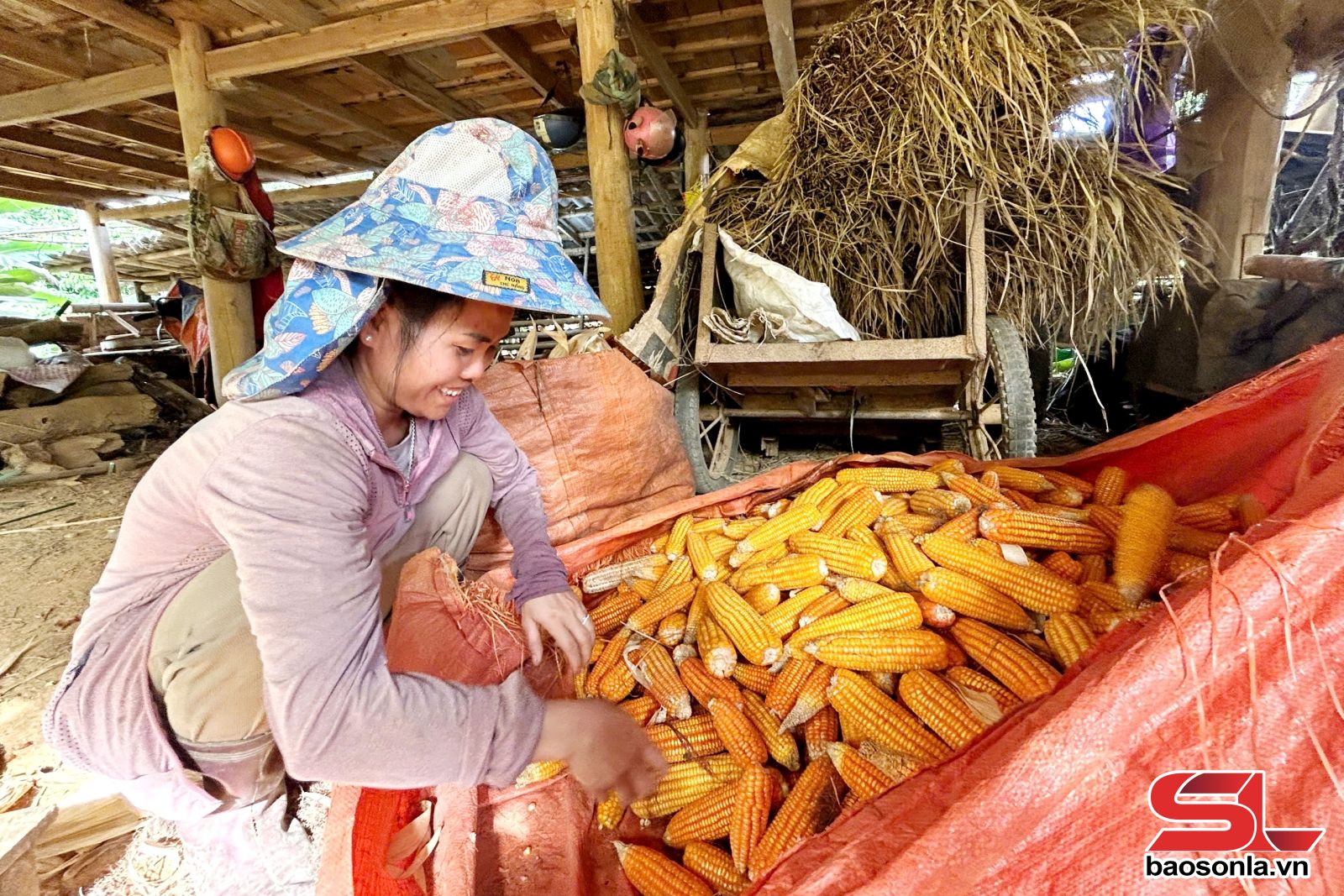 Người dân xã Chiềng La dự trữ ngô khô làm thức ăn cho gia súc.