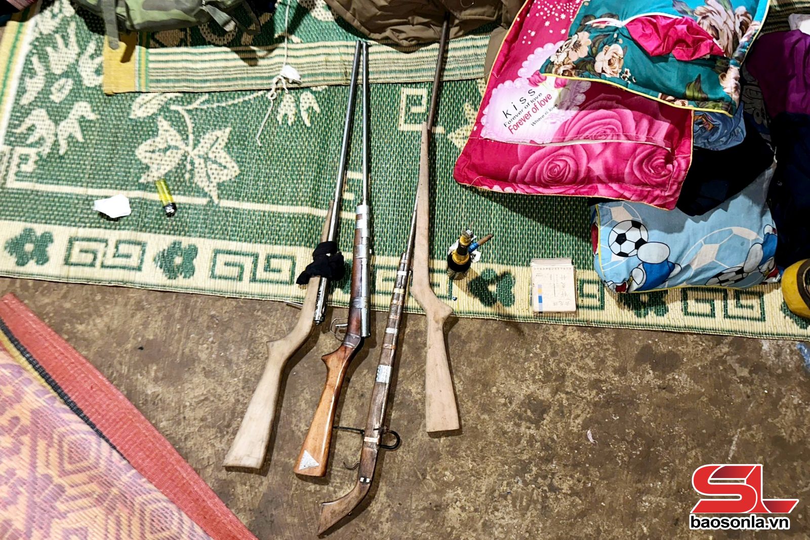 Mở rộng điều tra, Đồn Biên phòng Phiêng Pằn phối hợp với các lực lượng chức năng và chính quyền địa phương tổ chức khám xét nơi ở của đối tượng Giàng A Nhạ tại bản Pá Liềng, thu giữ thêm 30 viên ma túy tổng hợp, 3 khẩu súng tự chế.
