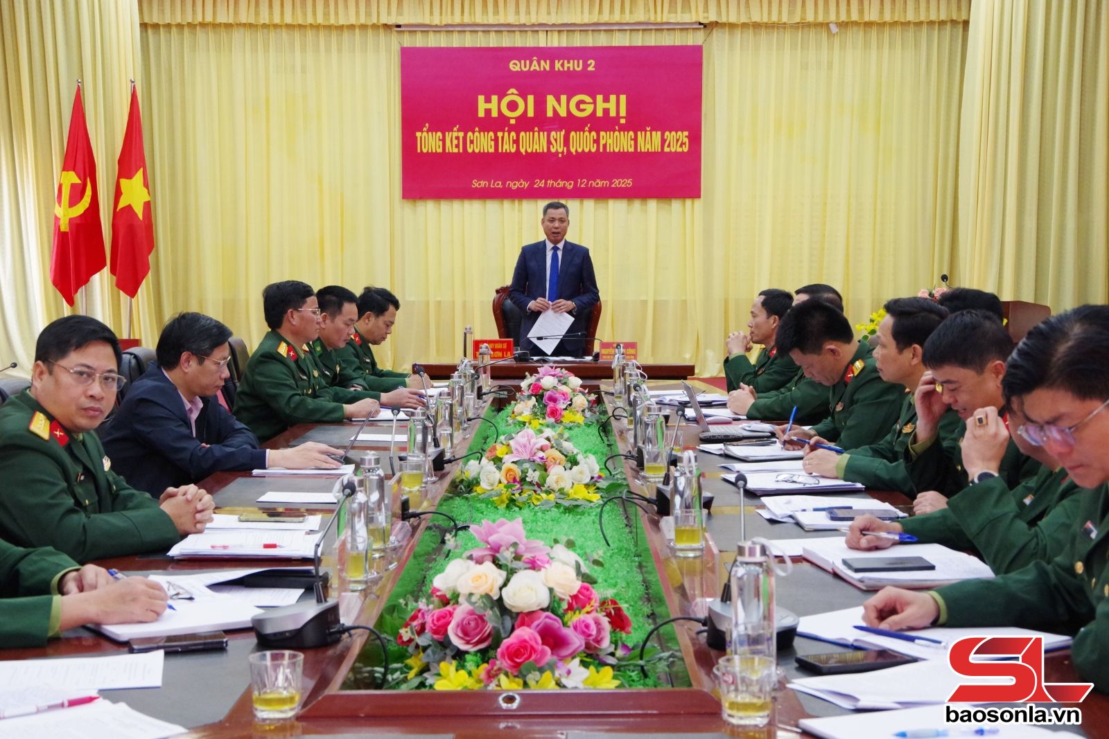 Ngày 24/12, Bộ Tư lệnh Quân khu 2 tổ chức Hội nghị tổng kết công tác quân sự, quốc phòng năm 2025, bằng hình thức trực tiếp, kết hợp trực tuyến. Dự hội nghị tại điểm cầu tỉnh Sơn La, có đồng chí Nguyễn Thành Công, Phó Chủ tịch UBND tỉnh.