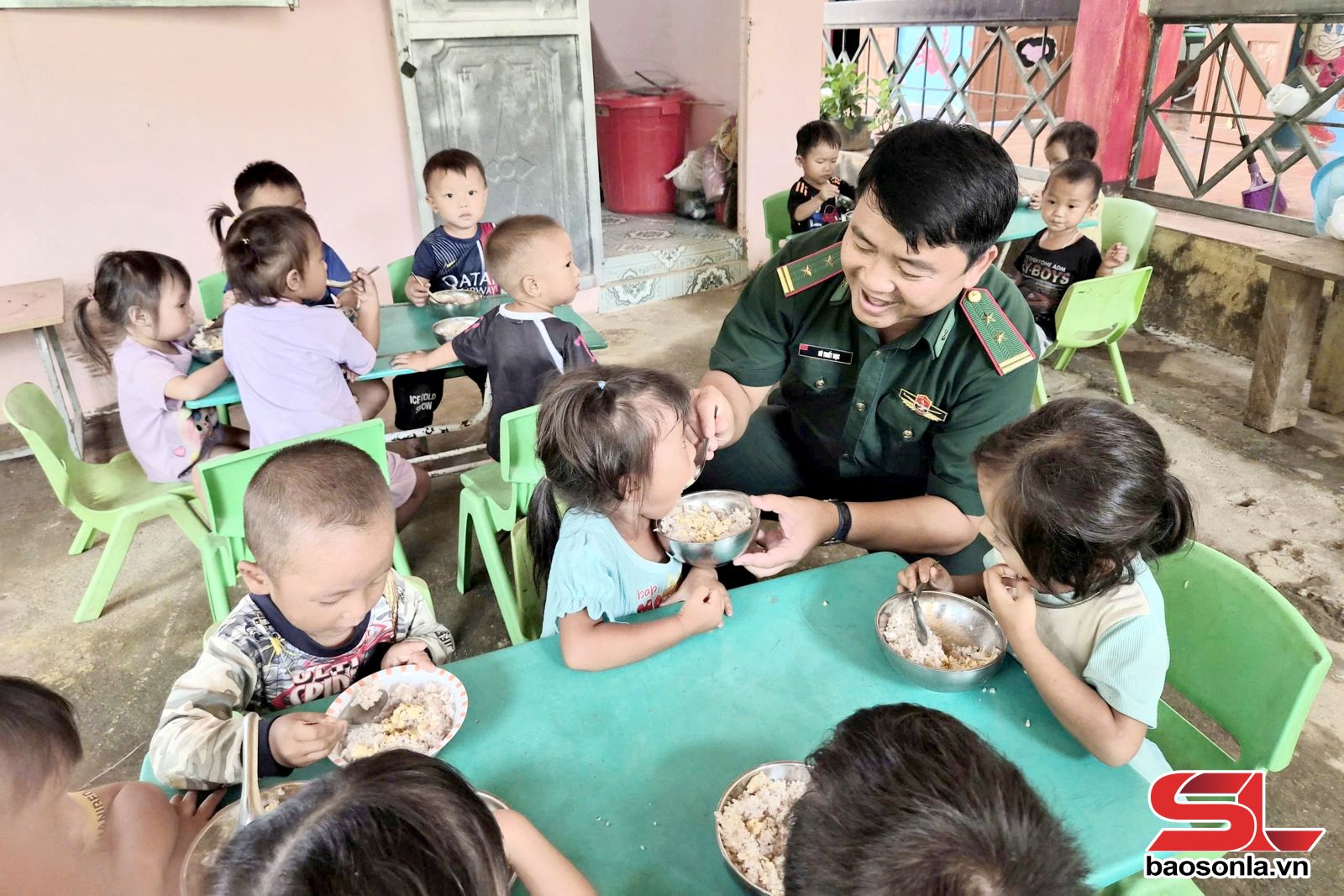 Cán bộ Đồn Biên phòng Chiềng Sơn với Chương trình Nâng bước em tới trường.