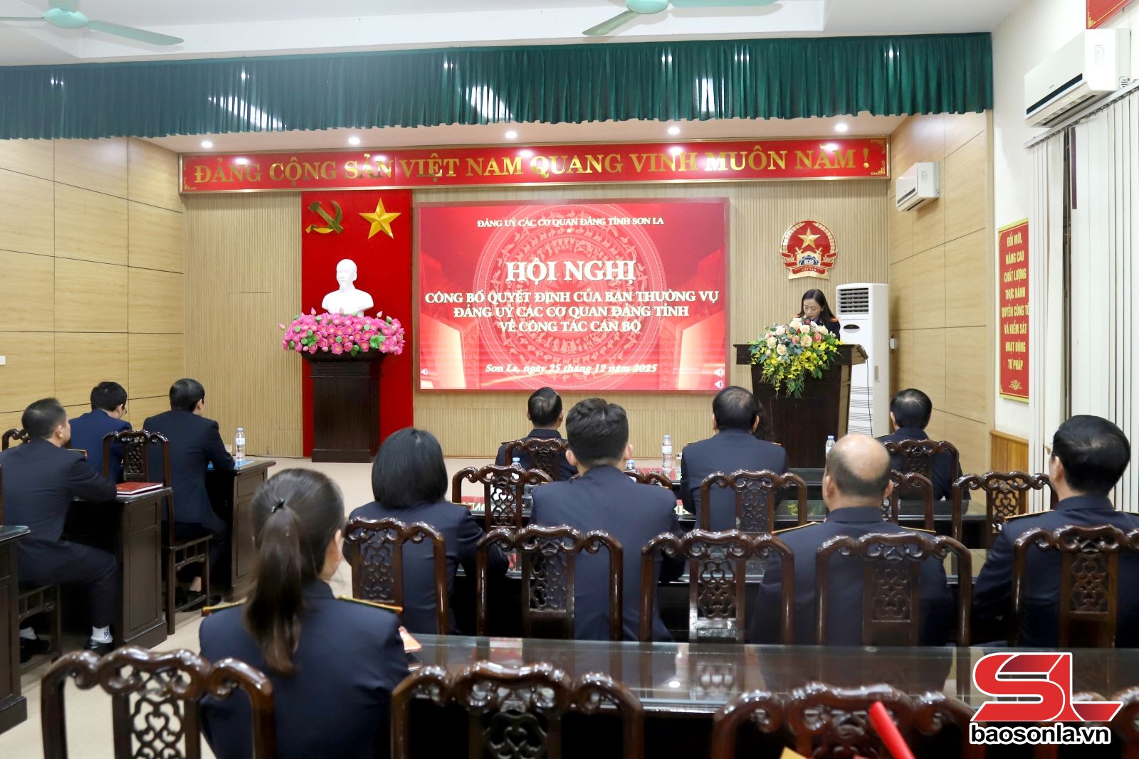Tại Hội nghị, đã công bố Quyết định 140-QĐ/ĐU ngày 22/12/2025 của Ban Thường vụ Đảng ủy các cơ quan Đảng tỉnh chỉ định đồng chí Vũ Trung Thành, Viện trưởng Viện Kiểm sát nhân dân tỉnh Sơn La tham gia Ban Chấp hành Đảng bộ, Ban Thường vụ Đảng ủy, chỉ định giữ chức Bí thư Đảng ủy Viện Kiểm sát nhân dân tỉnh khóa I, nhiệm kỳ 2025-2030.
