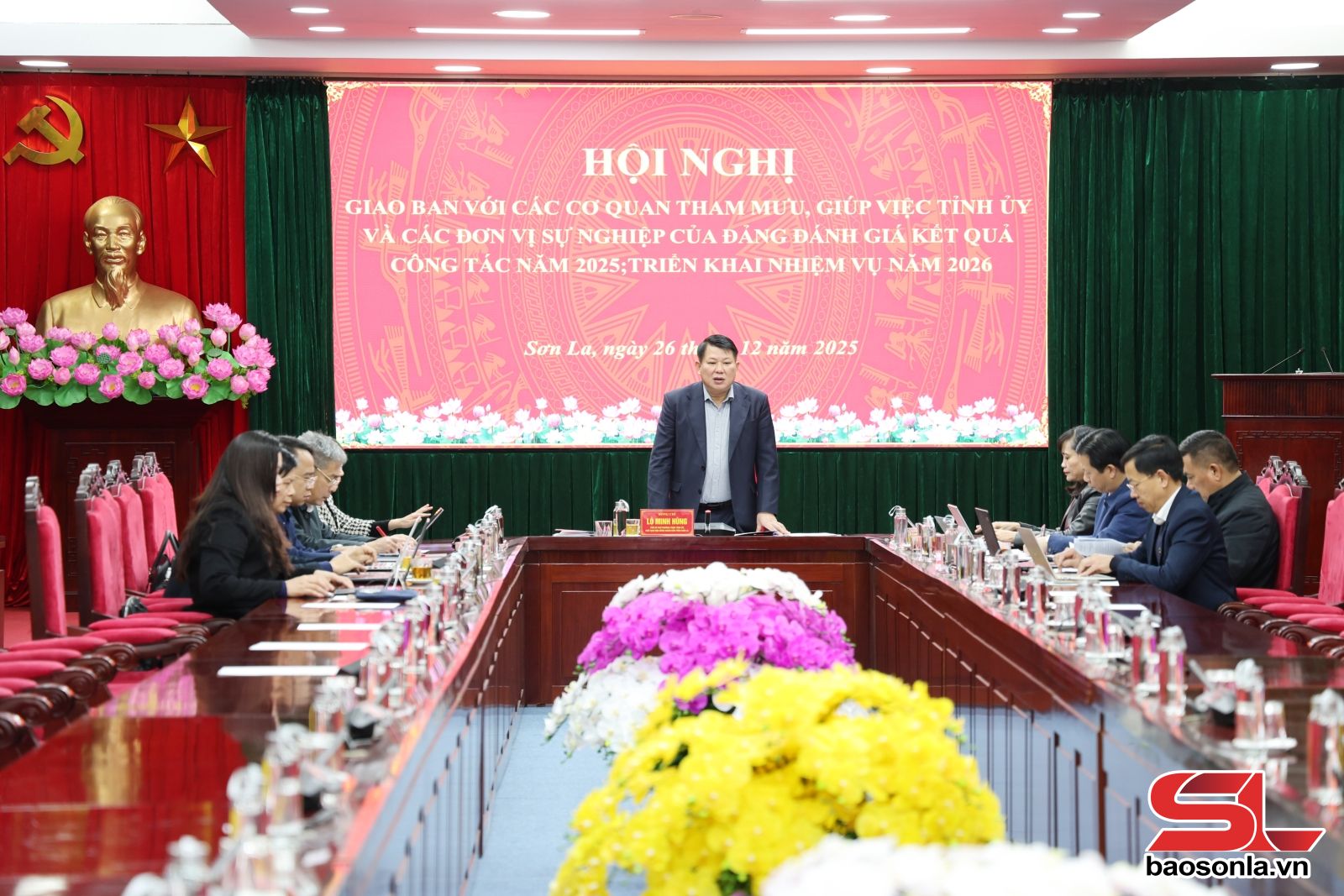 Ngày 26/12, đồng chí Lò Minh Hùng, Phó Bí thư Thường trực Tỉnh ủy, Chủ tịch HĐND tỉnh, đã chủ trì Hội nghị giao ban với các cơ quan tham mưu, giúp việc Tỉnh ủy và các đơn vị sự nghiệp của Đảng, đánh giá kết quả công tác năm 2025, triển khai nhiệm vụ năm 2026.