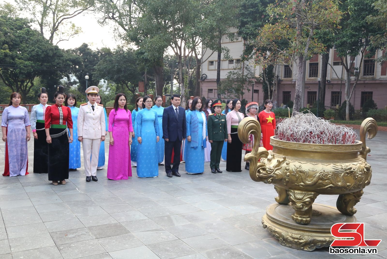 Trong không khí trang nghiêm, xúc động, Đoàn đại biểu đã báo công, dâng hương tưởng nhớ Chủ tịch Hồ Chí Minh và các Anh hùng liệt sĩ đã hy sinh cho Tổ quốc vì sự nghiệp giải phóng dân tộc. Trước anh linh Chủ tịch Hồ Chí Minh, các Anh hùng liệt sĩ, cán bộ, hội viên Hội LHPN tỉnh Sơn La xin nguyện tiếp nối truyền thống vẻ vang “Anh hùng, bất khuất, trung hậu, đảm đang” của người phụ nữ Việt Nam, nêu cao quyết tâm chính trị, vượt qua mọi khó khăn, thách thức, hoàn thành xuất sắc mọi nhiệm vụ được giao, góp phần xây dựng tỉnh Sơn La ngày càng giàu đẹp, phồn vinh, cùng cả nước vững tin bước vào kỷ nguyên mới, kỷ nguyên vươn mình của dân tộc.