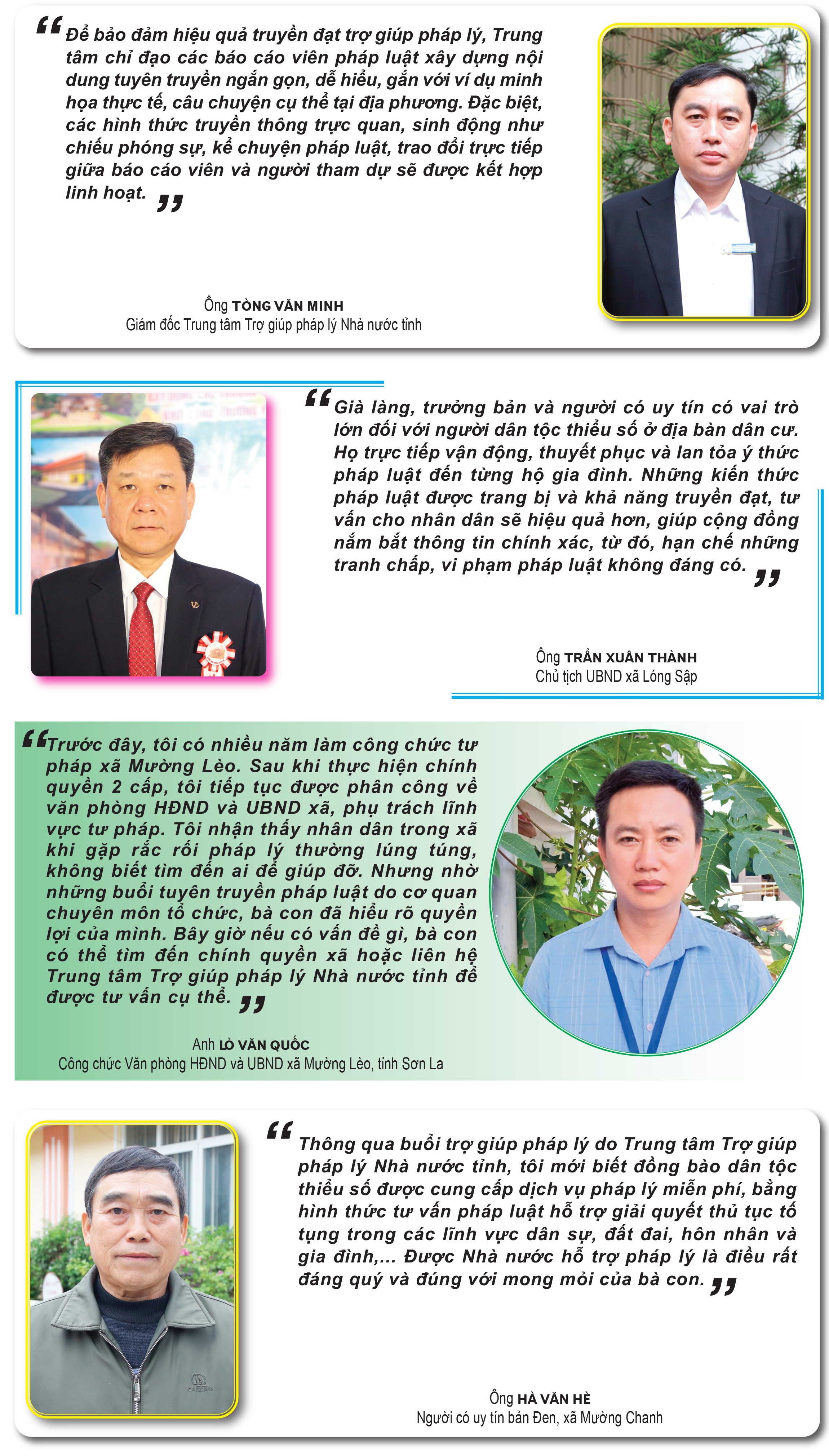 Phát huy vai trò là địa chỉ pháp lý tin cậy, Trung tâm Trợ giúp pháp lý Nhà nước tỉnh hướng hoạt động về cơ sở, đẩy mạnh tuyên truyền, phổ biến, giáo dục pháp luật cho đồng bào dân tộc thiểu số, góp phần nâng cao nhận thức, hiểu biết pháp luật, chấp hành tốt các chủ trương của Đảng, chính sách pháp luật của Nhà nước.
