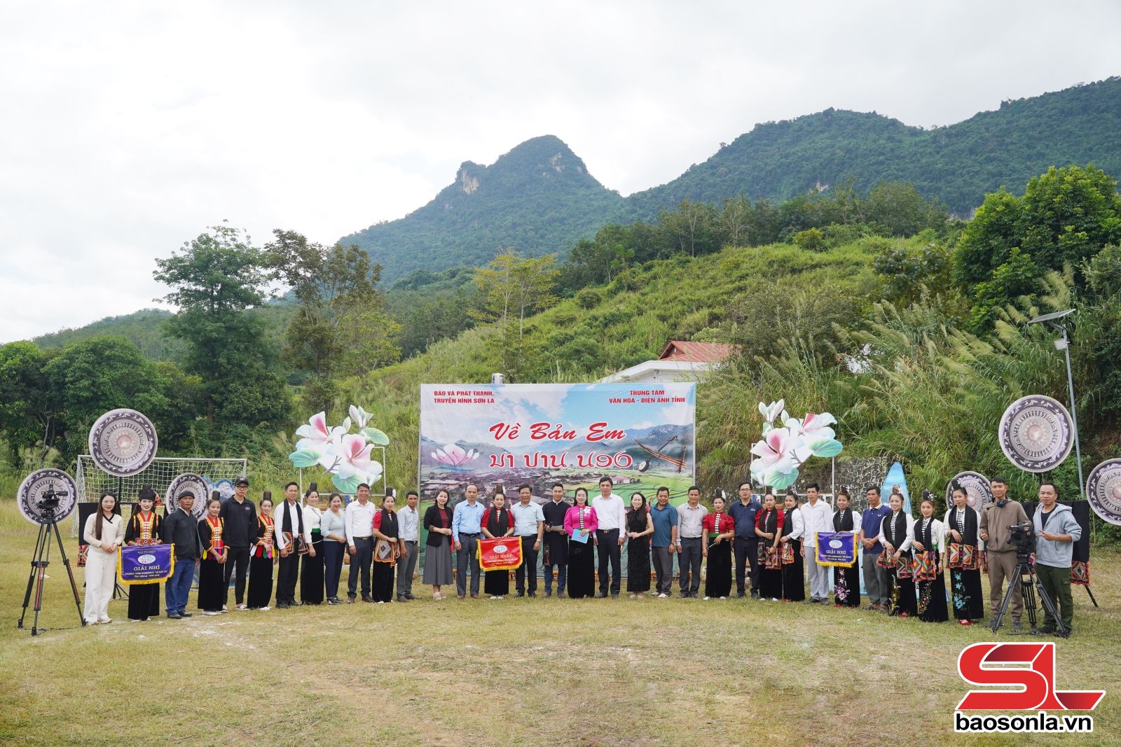 Ekip Báo và phát thanh, truyền hình Sơn La, Ban tổ chức, nhà tài trợ Prudential và các đội thi chụp ảnh lưu niệm tại game show “Về bản em” xã Chiềng La.