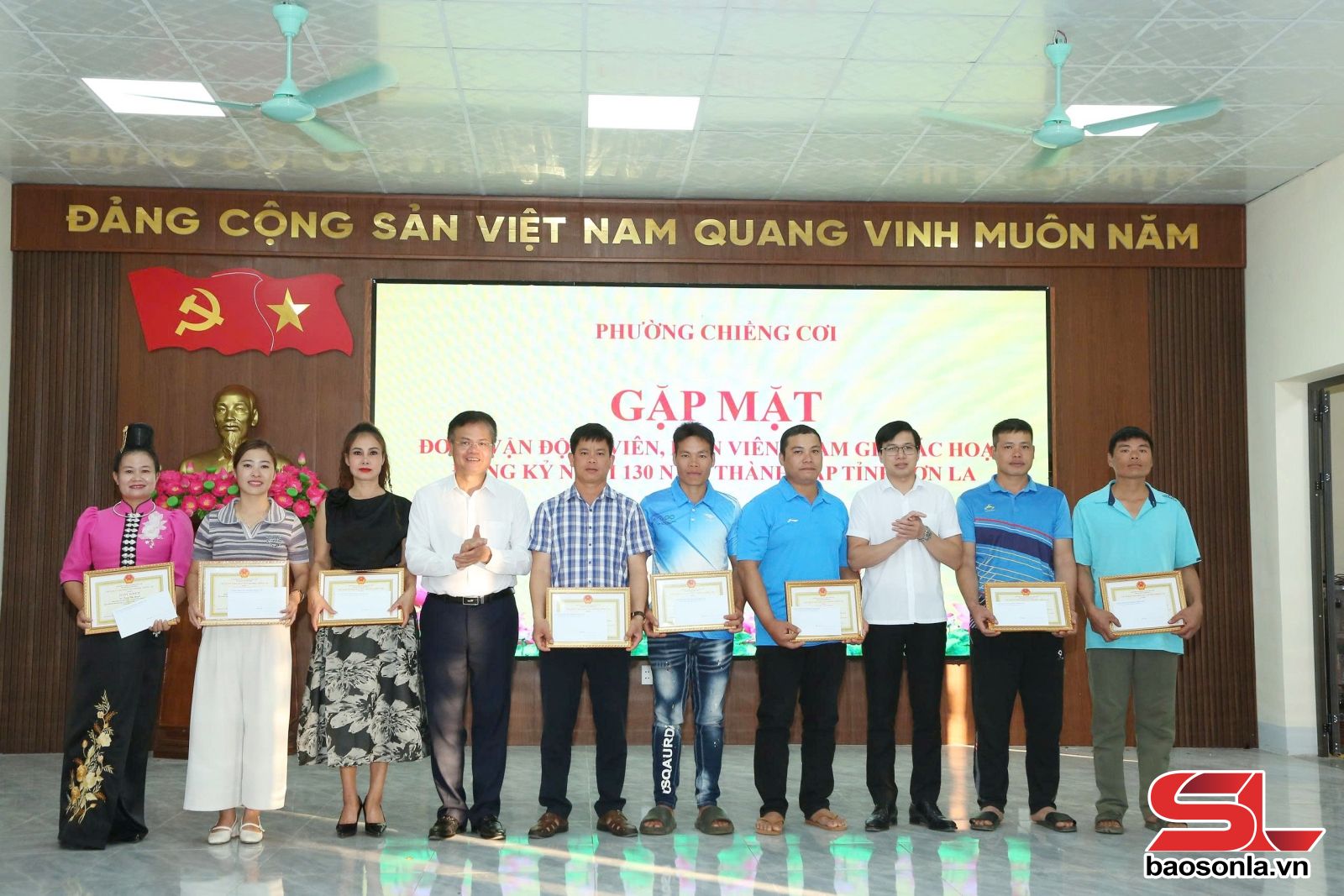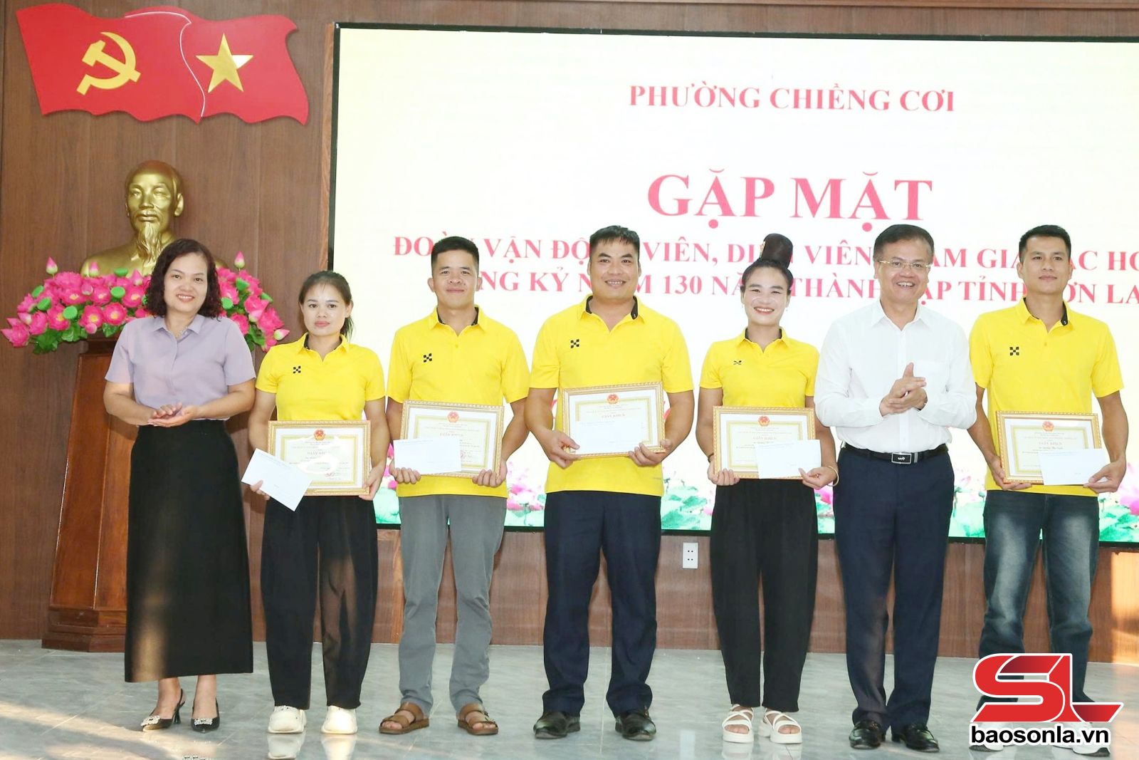 Lãnh đạo phường Chiềng Cơi tặng giấy khen cho các cá nhân đã có thành tích tiêu biểu trong các hoạt động văn nghệ, thể thao chào mừng kỷ niệm 130 năm ngày thành lập tỉnh Sơn La.