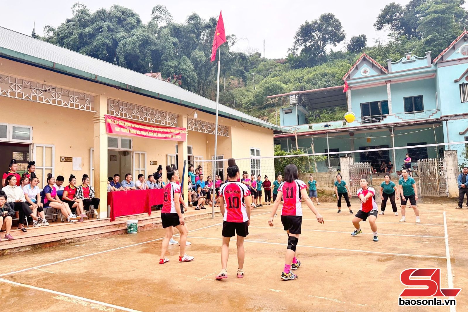 Chi hội Phụ nữ bản Ót Nọ, phường Chiềng Cơi tổ chức giải bóng chuyển hơi.