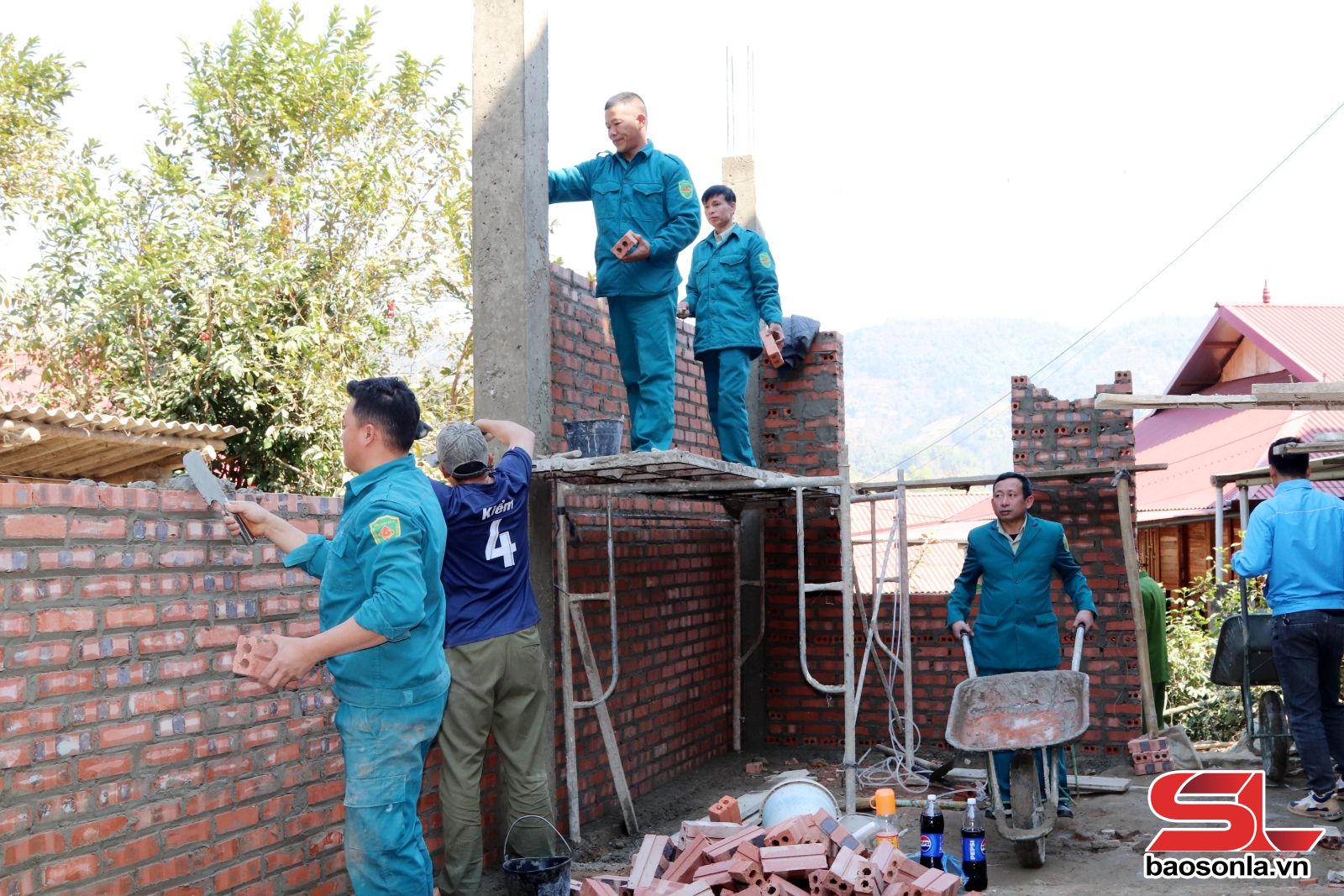 Có mặt tại bản Dửn, xã Phổng Lăng, huyện Thuận Châu, đông đảo bà con nhân dân và các lực lượng công an, dân quân tự vệ, đoàn thanh niên đang hỗ trợ gia đình chị Lò Thị Biển xây nhà. Anh Cà Văn Ương, Chỉ huy trưởng Ban Chỉ huy quân sự xã Phổng Lăng, cho biết: Hưởng ứng phong trào xóa nhà tạm trước Tết, xã đã huy động 80 lượt dân quân giúp các hộ gia đình chuyển vật liệu xây dựng, hỗ trợ xây tường, lợp mái. Đây là một hoạt động rất ý nghĩa, giúp các hộ nghèo có nhà mới đón Tết, sớm ổn định cuộc sống.