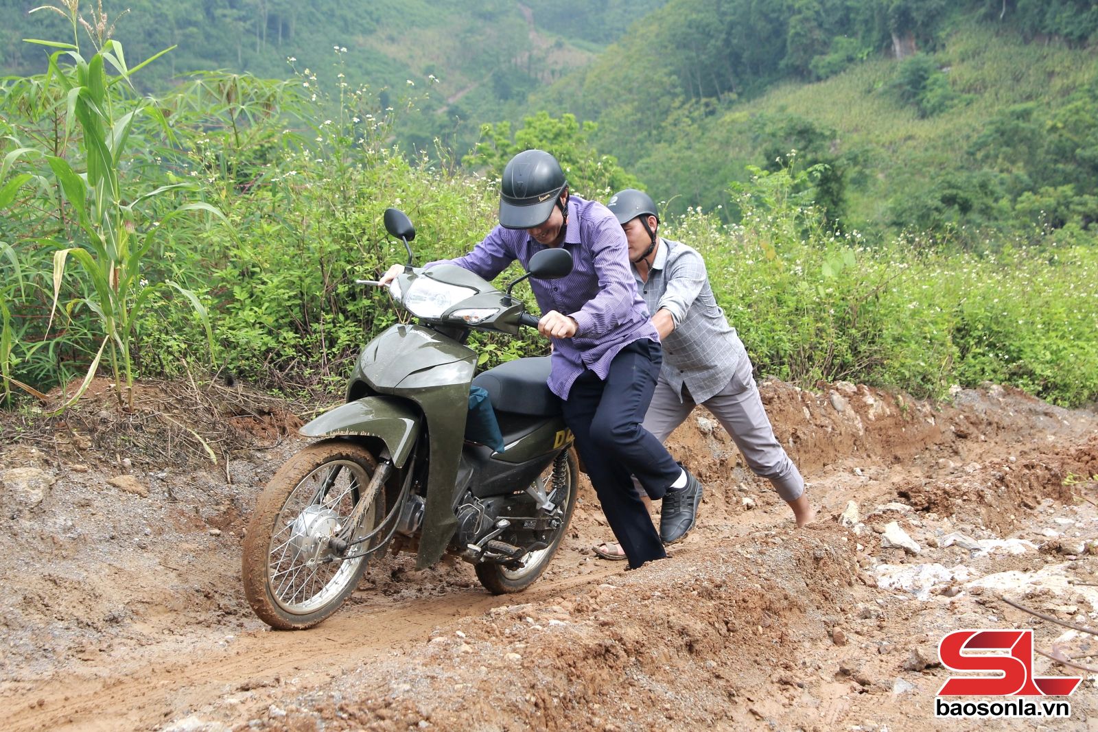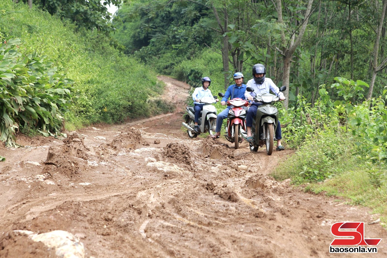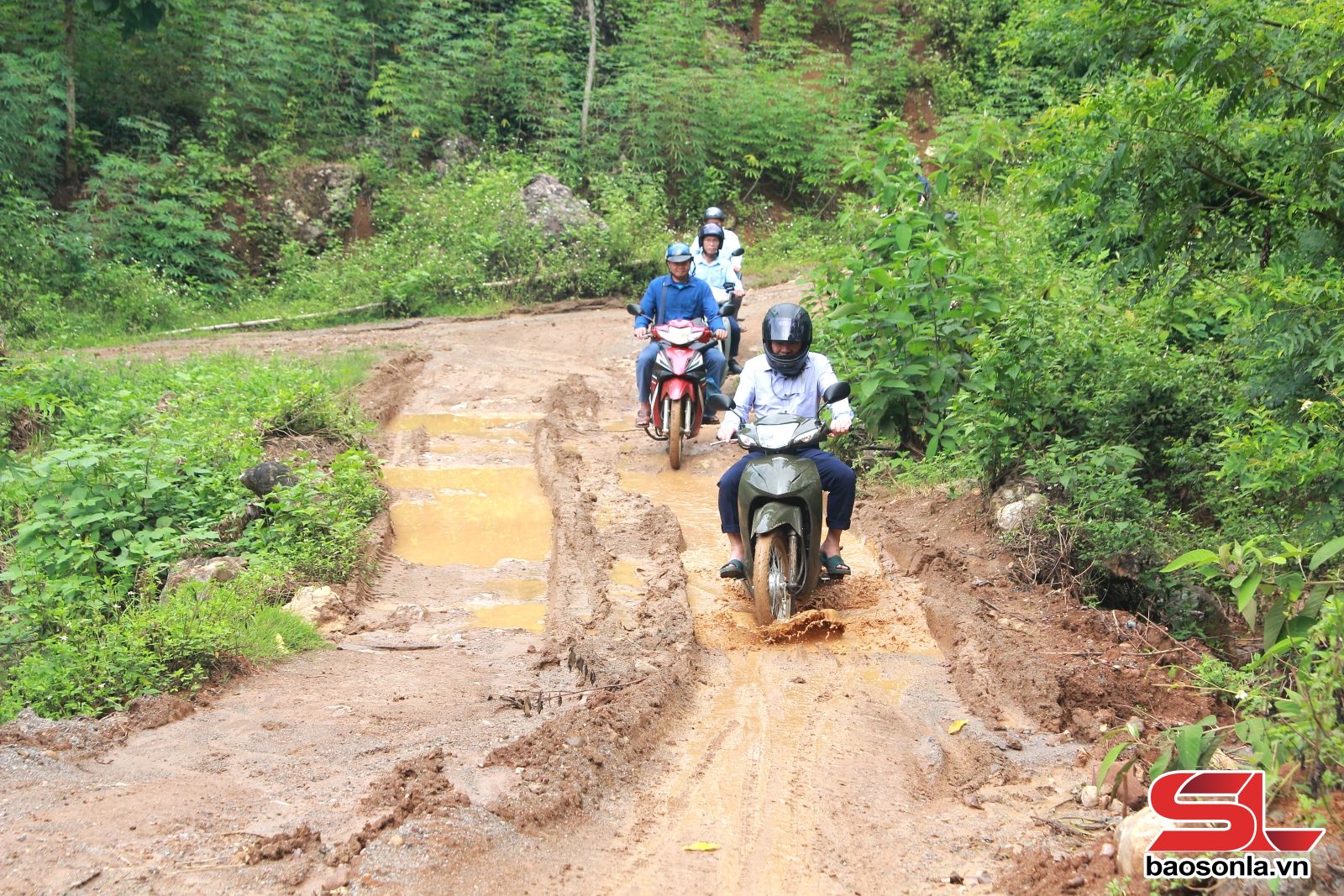 Không chỉ tuyến đường từ bản Nhèm vào trung tâm xã, nhiều tuyến khác ở Chiềng Sại cũng đang xuống cấp hoặc chưa được bê tông hóa. Theo chuyến công tác của HĐND xã, chúng tôi có dịp đến bản Suối Ngang. Con đường đất dài 15 km nối xã Chiềng Sại với xã Tân Yên, sau mưa đêm, trở thành dải bùn lầy. Xe máy ì ạch, nhiều đoạn phải dắt bộ, bánh xe trượt dài trên nền đất ướt.