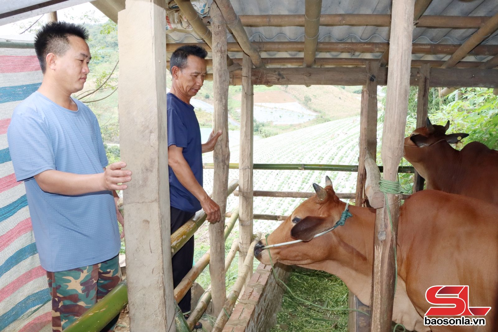 Thăm gia đình ông Sồng A Pha, hộ cận nghèo ở bản Kéo Bó, được hỗ trợ nuôi bò sinh sản từ Chương trình 1719. Khi biết mình thuộc diện thụ hưởng, ông Pha tu sửa chuồng trại, trồng thêm cỏ làm thức ăn. Ông Pha phấn khởi chia sẻ: Tháng 4/2025, gia đình tôi được Nhà nước hỗ trợ hai con bò sinh sản, được cán bộ hướng dẫn kỹ thuật chăm sóc. Tôi thực hiện đúng quy trình, đảm bảo vệ sinh chuồng trại. Hiện bò phát triển tốt, đầu tháng 10 vừa qua đã đẻ được một bê con. Cùng với đó, gia đình tích cực trồng ngô, lúa để quyết tâm thoát nghèo trong năm nay.