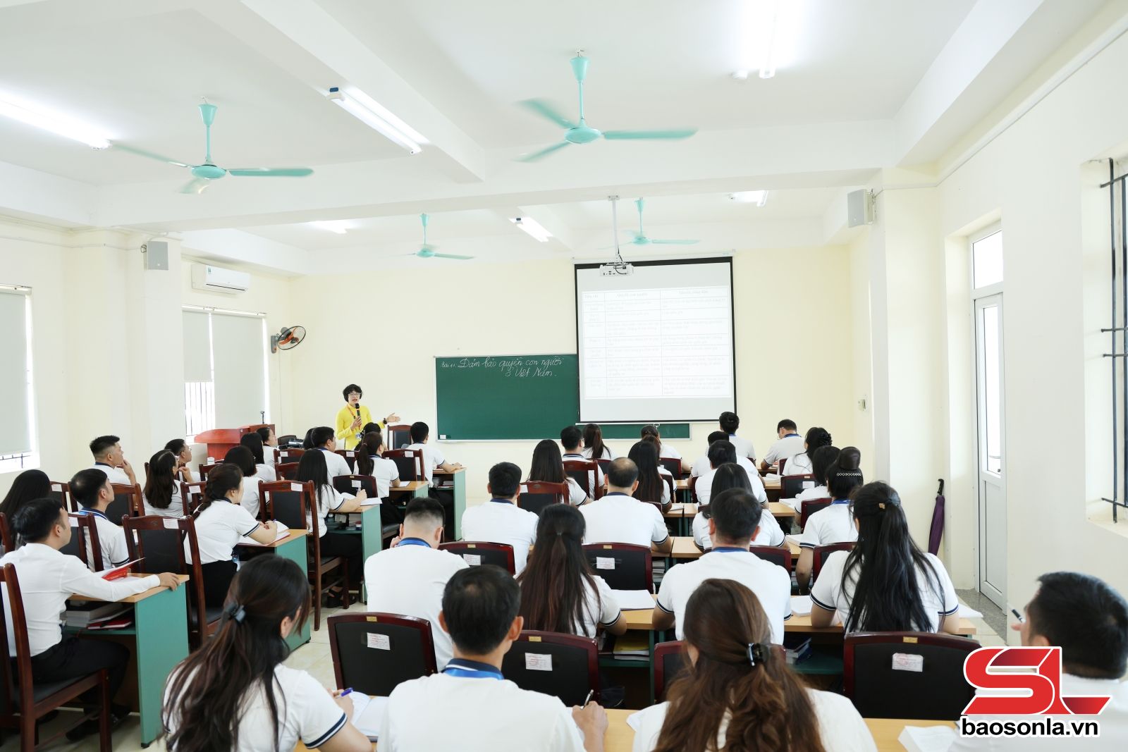 Đồng chí Lò Thị Thúy Hà, Hiệu trưởng Trường Chính trị tỉnh, cho biết: Thực hiện Quy định số 11-QĐ/TW ngày 19/5/2021 của Ban Bí thư về trường chính trị chuẩn, Trường Chính trị tỉnh đã tham mưu cho Tổ công tác của Ban Thường vụ Tỉnh ủy xây dựng và ban hành Đề án số 08-ĐA/TU ngày 19/1/2023 về xây dựng, phát triển Trường Chính trị tỉnh Sơn La đạt chuẩn giai đoạn 2022-2025, tầm nhìn đến năm 2030. Trên cơ sở đó, Nhà trường đã cụ thể hóa thành các kế hoạch, triển khai đồng bộ các nội dung như kiện toàn tổ chức bộ máy, chuẩn hóa đội ngũ cán bộ, giảng viên; đổi mới nội dung, phương pháp đào tạo, bồi dưỡng; đẩy mạnh nghiên cứu khoa học, tổng kết thực tiễn; xây dựng văn hóa trường Đảng; đầu tư cơ sở vật chất, trang thiết bị hiện đại. Đến nay, trường đã được đánh giá đạt chuẩn mức 1, với 6 nhóm tiêu chí, 55 chỉ tiêu đạt chuẩn; trong đó, có 8 chỉ tiêu vượt chuẩn mức 1, tiệm cận chuẩn mức 2.